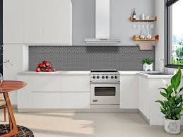Recreating this stylish kitchen in your own home begins with a focus on simplicity and a pallet of neutral colors. Start with white, flat-fronted cabinets available from retailers such as IKEA for a clean and sleek look. Complement these with a wooden countertop, which can be sourced from home improvement stores — select a butcher block for both style and durability. For lighting, consider energy-efficient LED recessed lights from brands like Philips, which provide that seamless look and bright, even illumination. Don't forget the floor; a visit to your local tile shop can offer a variety of patterned vinyl or ceramic options that are easy to install. With careful shopping and an eye for detail, you can bring this elegant design into your own space, creating a chic and inviting kitchen that's sure to impress.