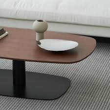 For those looking to recreate this refined look in their own home, the key is to stick to a limited color palette and invest in a few high-quality, well-crafted pieces of furniture. Start with a clean, white base for your walls and kitchen finishes, then introduce wood elements to bring a touch of nature indoors. Furniture with clean lines and organic shapes are signature pieces that can be found in stores specializing in contemporary home furnishings — consider brands like West Elm or CB2 for tables and seating that echo the shapes seen here. A plush, comfortable sofa in a dark hue will not only serve as a practical centerpiece in your living space but also as the visual anchor, just as the black sofa does in this design. Maintain a clutter-free environment to preserve the sleek look, and let your carefully chosen furniture shine. With thoughtful selections and a restrained approach, you can channel the essence of this modern and inviting interior in your own abode.
